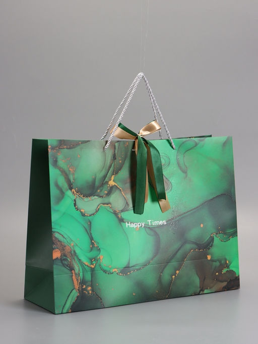• Пакет подарочный ламинированный «Мрамор», зеленый с бантиком, 43×32×14 см