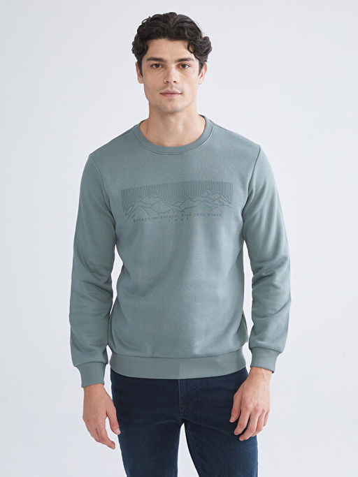 • Bisiklet Yaka Bask?l? Erkek Kal?n Sweatshirt