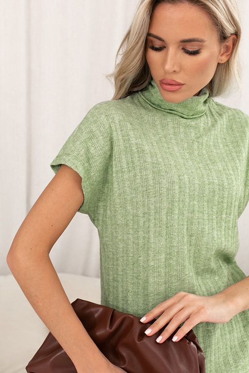 Джемпер свободного силуэта из фактурного эластичного полотна. Цельнокроеный короткий рукав. Воротник-стойка с отворотом. Женский джемпер стал незаменимой и популярной разновидностью одежды, которая может применяться буквально во всех случаях жизни.