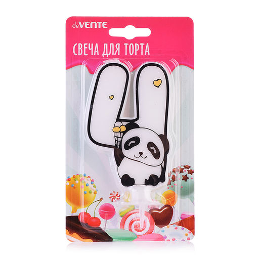 • Свеча-цифра для торта "Панда" 4, размер свечки 9,1x6,6x1 см, с рисунком, белая, в картонном блистере