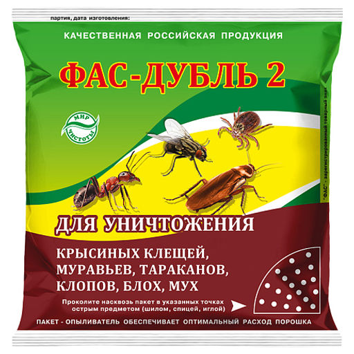 Средство предназначено для уничтожения тараканов, клопов, блох, мух и крысиных клещей.