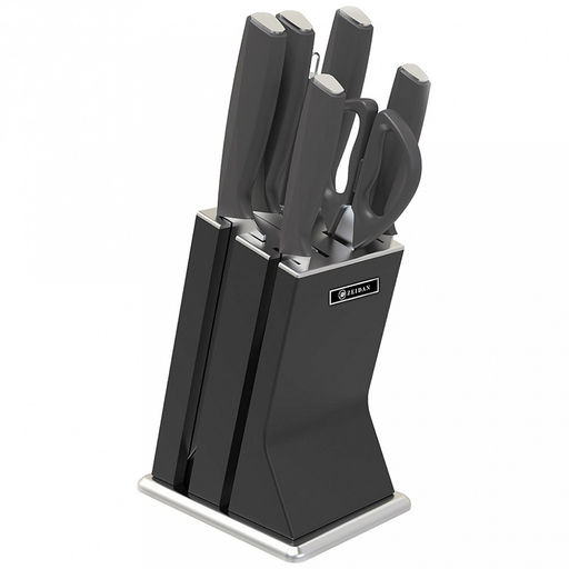 • "Zeidan" Набор ножей из нержавеющей стали 8 предметов, прорезиненные ручки, подставка для ножей, подарочная упаковка (Китай)