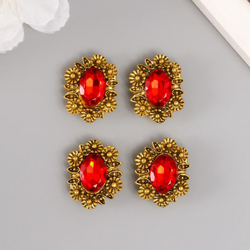 • Декор для творчества металл пряжка «Кристалл в цветах», набор 4 шт., 2.5×2.3×1 см
