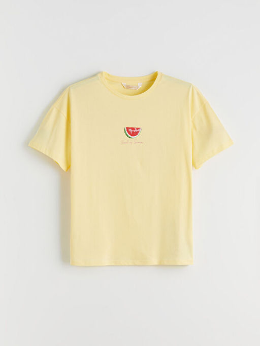 Bisiklet Yaka Bask?l? Kad?n Pijama ?st