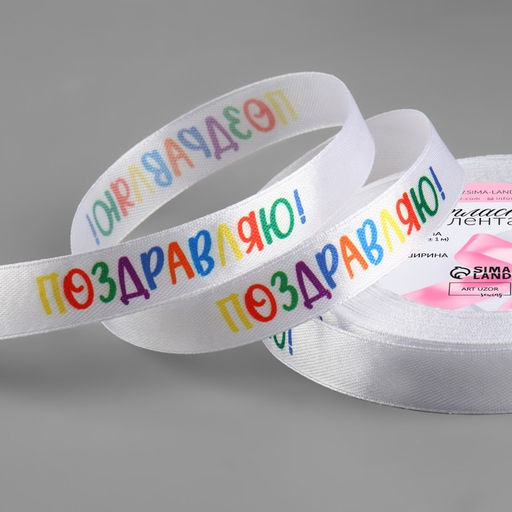 • Лента атласная «Поздравляю!», 15 мм, 23±1 м, белая