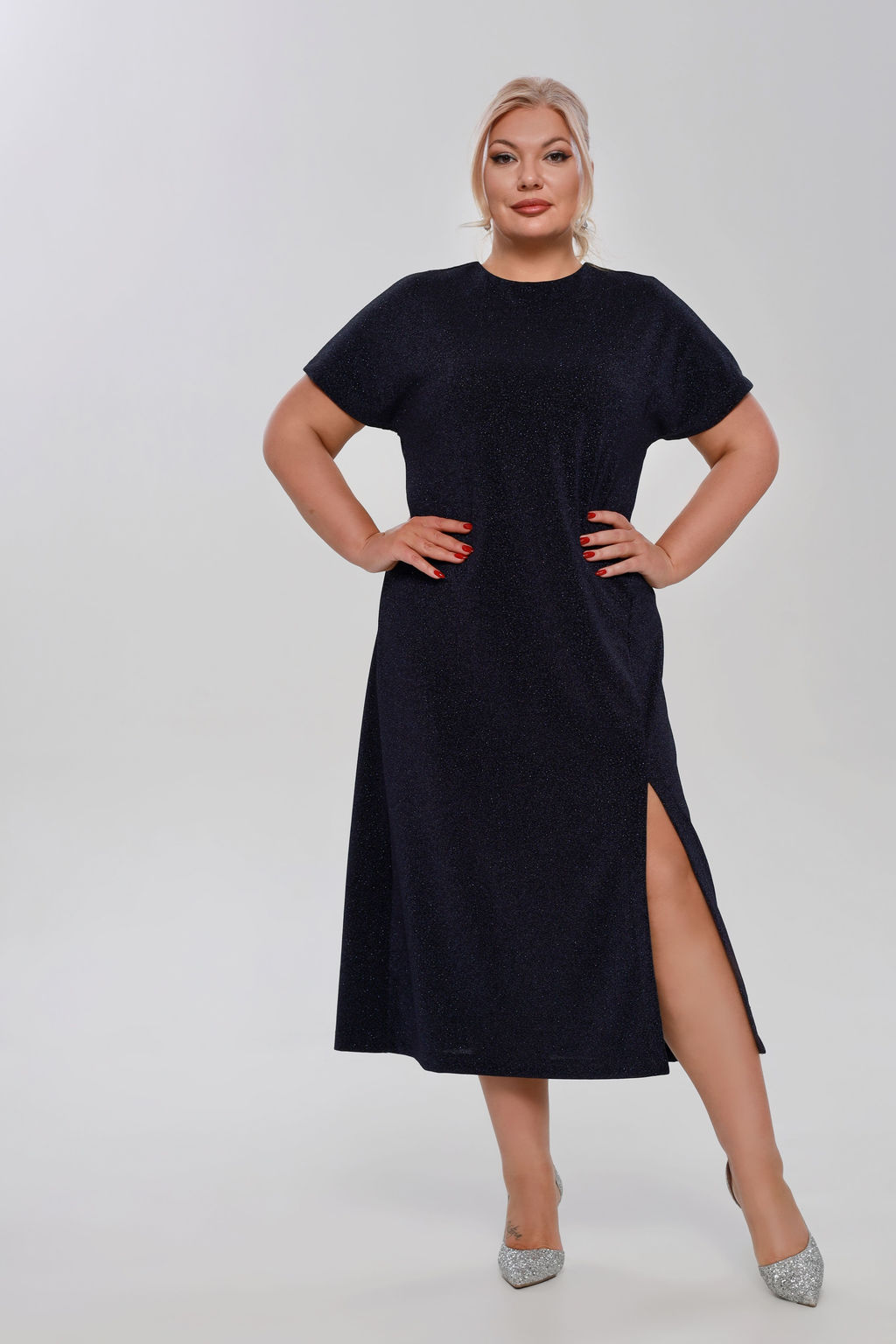 Платье представляет собой элегантный наряд, подчёркивающий женственность и утончённость образа. Его лаконичный дизайн создает уникальный баланс между простотой и роскошью. Материал платья украшен переливающимися нитями люрекса, придающими мерцающий эффект и привлекающими внимание своим блеском. Люрекс добавляет элемент роскоши и гламура, делая образ праздничным и запоминающимся. Разрез сбоку создаёт дополнительный акцент, открывая стройные ноги и создавая лёгкую игру теней и света. Такой дизайн позволяет визуально удлинять силуэт, делая фигуру зрительно стройнее и изящнее. Платье идеально подходит для вечерних мероприятий, торжественных случаев и романтических свиданий, позволяя женщине чувствовать себя уверенно и привлекательно.­