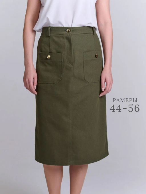 Женская джинсовая юбка А-силуэта на подкладке с притачным поясом с резинками по бокам и шлевками. Застежка расположена спереди по среднему шву на молнию и закрепляется пуговицей. Прекрасный повседневный офисный вариант, с накладными карманами спереди.