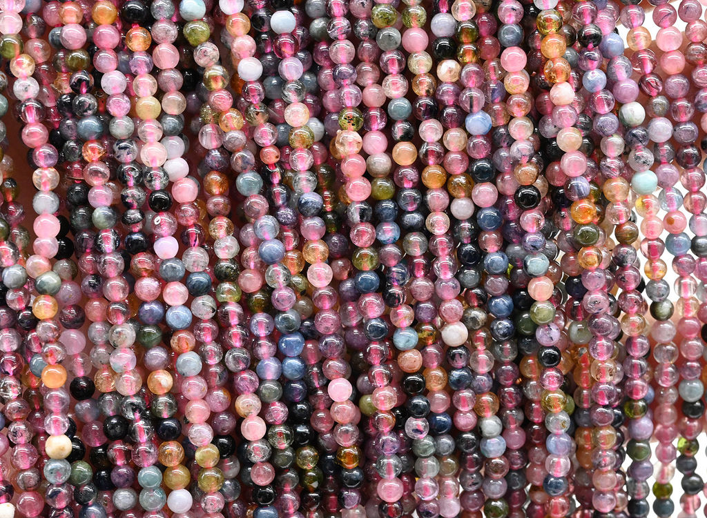 Бусины из турмалина шарик 3мм, 40см, 155 бусин Радуга камня