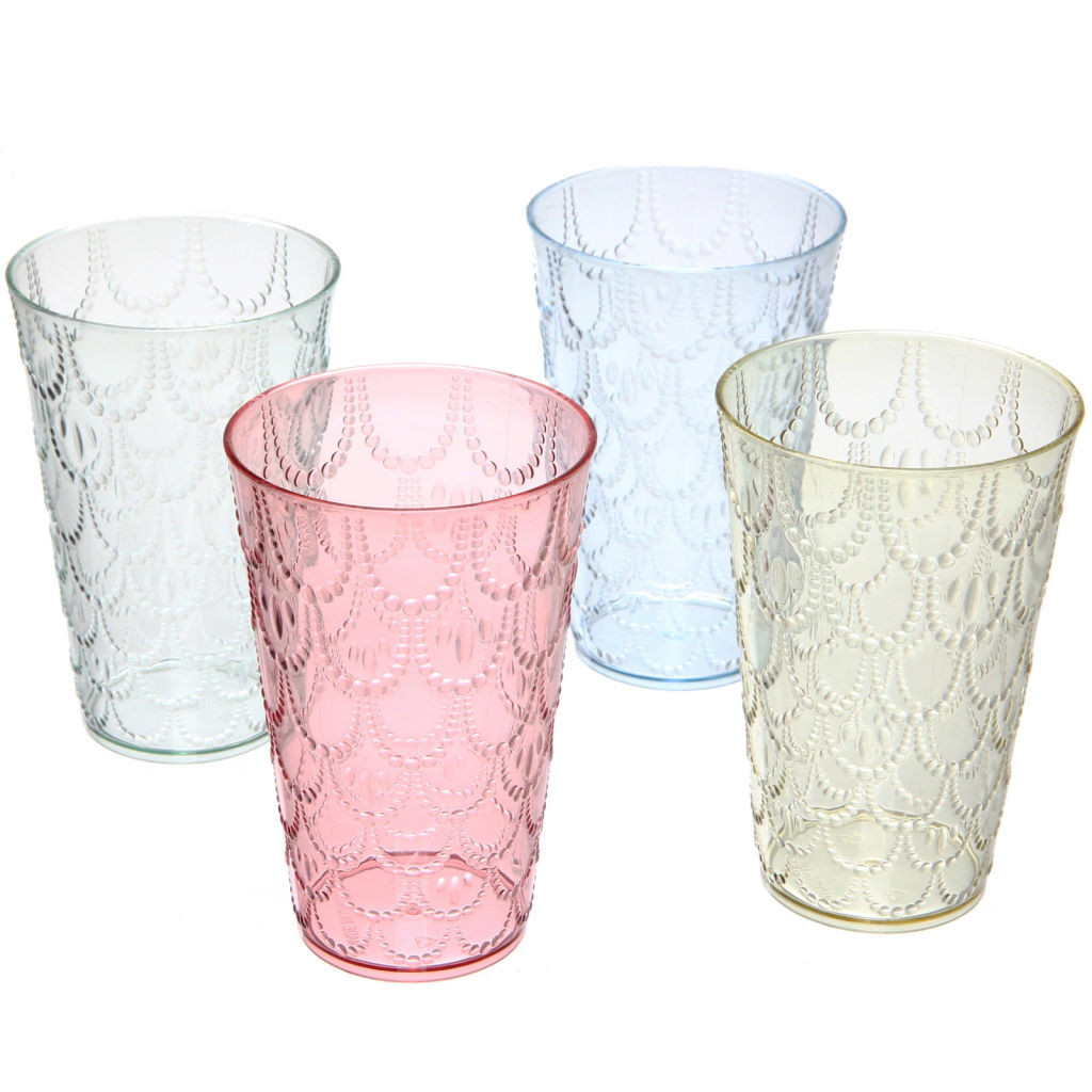 Цена за 2 шт. Стакан пластиковый 440мл "Кружево" в наборе 4шт, микс цветов