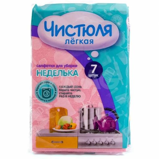 Внешний вид товара может отличаться от фотографий на сайте. ЧИСТЮЛЯ ЛЕГКАЯ салфетки вискозные Неделька (7шт)