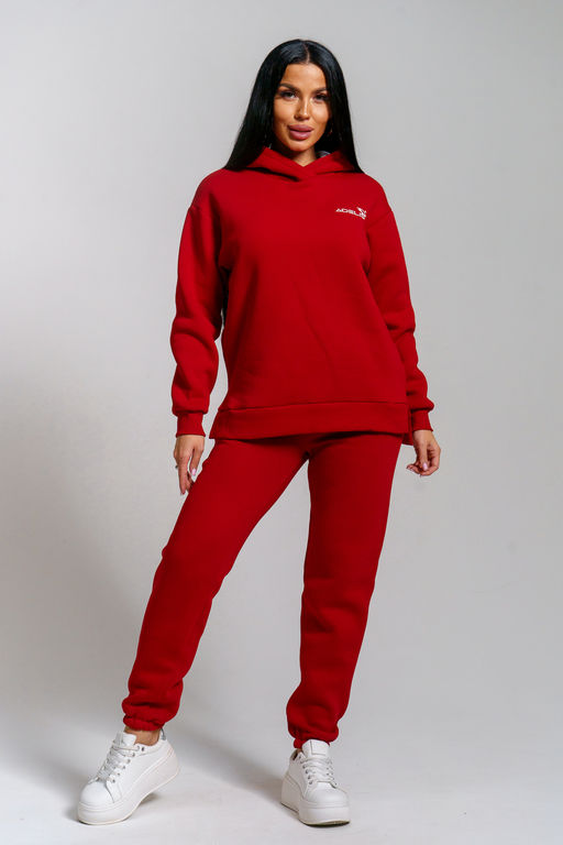Костюм женский. Куртка с длинным втачным рукавом на манжете, по низу изделия притачной пояс. Брюки на притачном поясе с резинкой, боковым карманом, по низу изделия манжета.