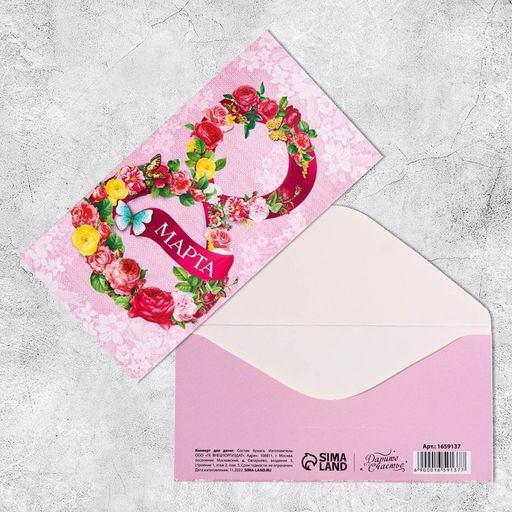 • Цена за 10 шт. Конверт для денег С 8 Марта, 16.5?8 см