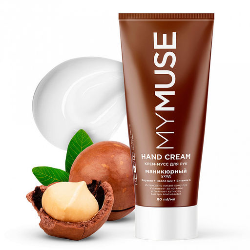 Крем-мусс для рук 80мл, маникюрный уход, питательный, кератин, масло Ши, Витамин Е, "Grass" (Россия)