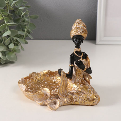 Сувенир полистоун подставка "Африканка в цветочном платье со шлейфом" золото 16х11,5х14 см 1032345