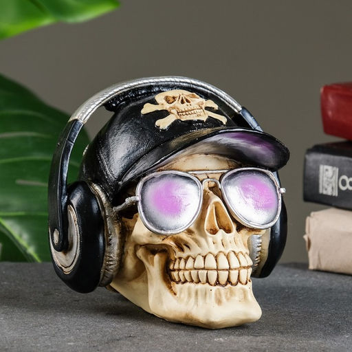 • Копилка для денег «Череп Весёлый Роджер», полистоун, чёрная кепка, 15.5×16×13 см