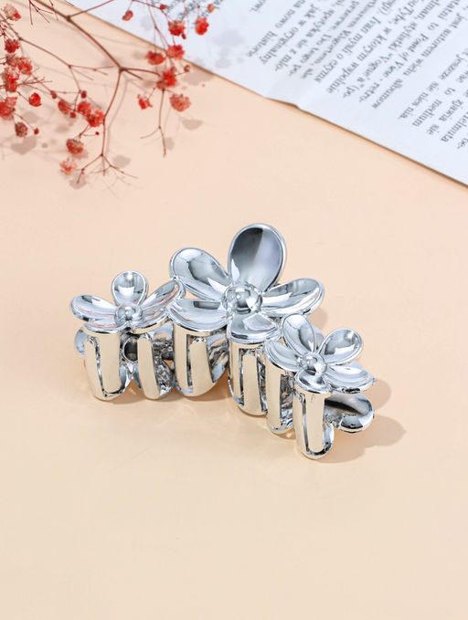 Цена за 12 шт. Крабик для волос «Хилман», цветы, 11 см, серебро