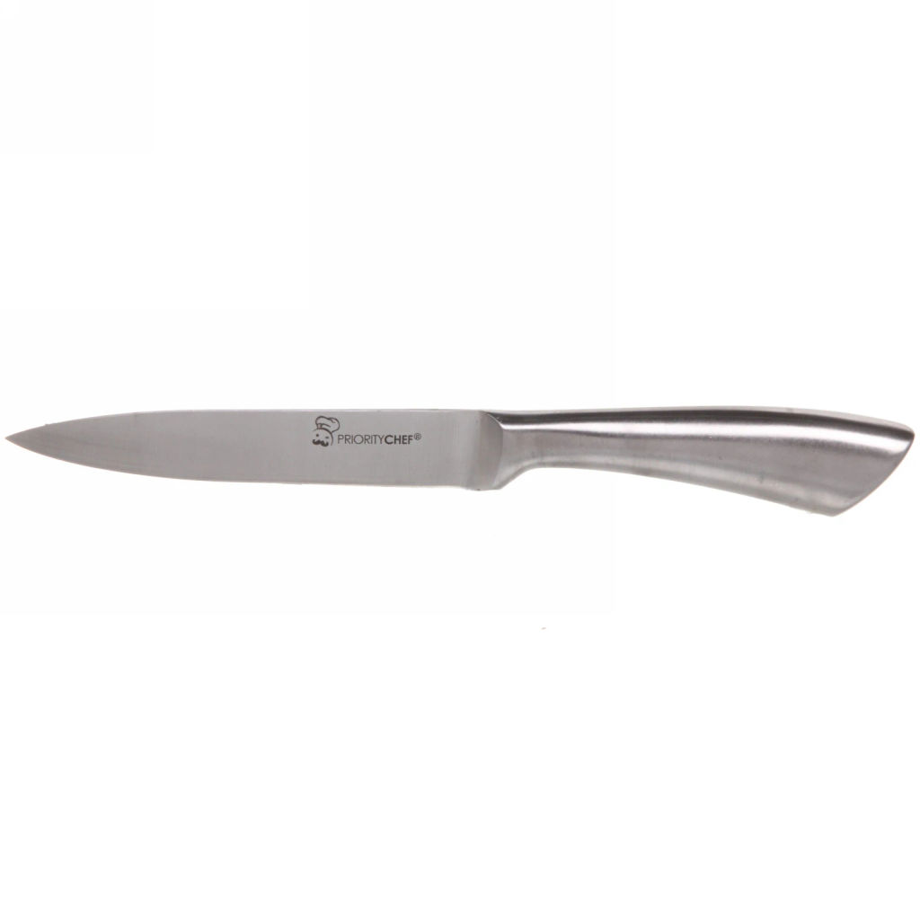 Овощной нож выполняет большинство задач, с которыми не может справиться ни один другой нож, поэтому такой вид кухонного ножа тоже является необходимым предметом на кухне любой хозяйки. С его помощью хозяйки могут нарезать тонкие ломтики цитрусовых для украшения коктейлей, аккуратно срезать тонкую кожуру и многое другое.­