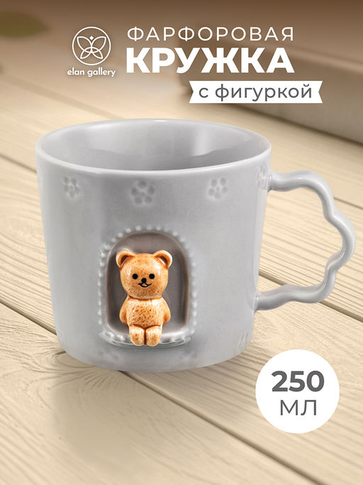 Кружка Медвежонок в домике от Elan Gallery предназначена для эстетичной сервировки вашего стола. Размер изделия 12х9,5х7,5 см, объём 250 мл. Выполнена из высококачественного фарфора. Он не впитывает цвет напитков и легко отмывается, благодаря чему надолго сохраняет свой оттенок. Серая поверхность изделия украшена рельефной фигуркой медвежонка, сидящего на окошке, а также рельефными цветочками. Кофейная кружка с фигурной ручкой поможет провести множество приятных завтраков с капучино и латте, а также уютные чайные вечера с конфетами, вафлями, другими десертами и сладостями. Подойдёт ценителям чая и кофе, которые любят пить из красивой и необычной посуды. Согрейтесь зимой любимым напитком: какао с маршмэллоу, ягодным чаем или горячим шоколадом. Летом освежитесь домашним лимонадом или морсом. Не рекомендуется применять абразивные моющие средства. Не подходит для использования в посудомоечной машине и микроволновой печи. Поставляется в картонной коробке благодаря ей вам не потребуется дополнительная подарочная упаковка. Фарфоровая кружка с милым зверьком от бренда Элан Галерея подарит вам неповторимые эмоции. Насладитесь чашкой любимого напитка вместе с новым другом!