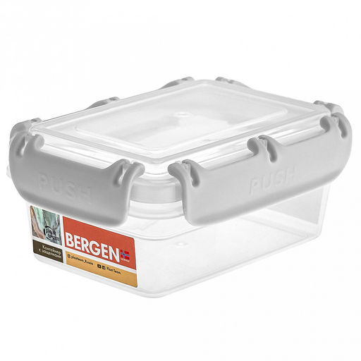 • "Bergen" Контейнер для продуктов пластмассовый 0,4л, 14,5х10,3х6см, с защелками, пепельный жемчуг, подходит для СВЧ (Россия)