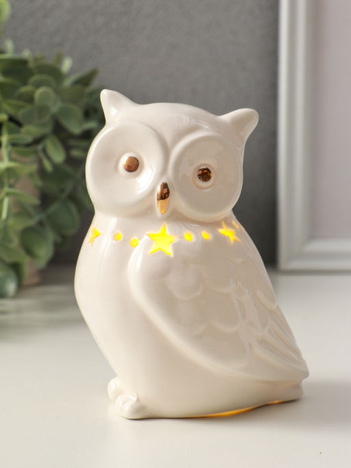 Сувенир керамика свет "Филин с ожерельем из звёзд" белый 9х6,5х13 см