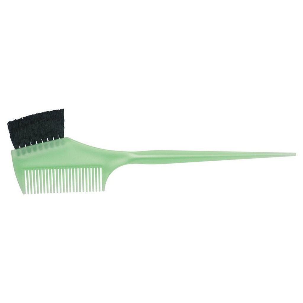 Инструмент совмещает в себе и кисть, и расчёску, что значительно облегчает процесс окраски. Кисть в оригинальном зеленом цвете понравится любому парикмахеру, поскольку она очень лёгкая, в то же время удобна в использовании и изготовлена из качественных материалов.