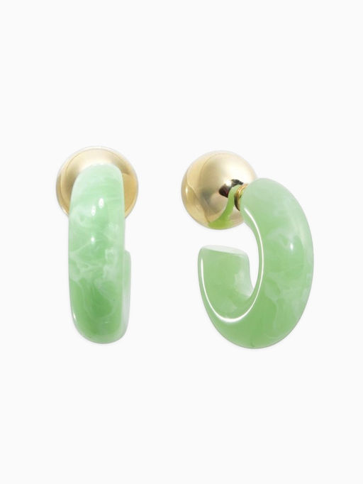• Серьги акрил "Полукольцо с бусиной №14", цвет светло-зелёный в золоте