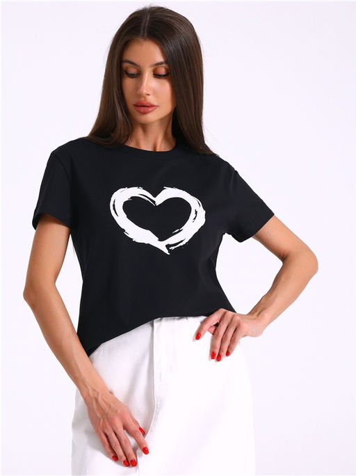 Уценка -70% футболка,хлопок 100%,кулир / хлопок 100%,черный / - / Сердце кистью / - / - / -,Футболка выполнена из кулира - легкого хлопкового полотна. Изделие свободного покроя с короткими рукавами и округлым вырезом горловины, украшено дизайнерским принтом. Уход: только машинная стирка (руками не стирать!) при температуре 40 градусов, без предварительного замачивания. Изделия с печатью перед стиркой необходимо вывернуть на изнаночную сторону.
