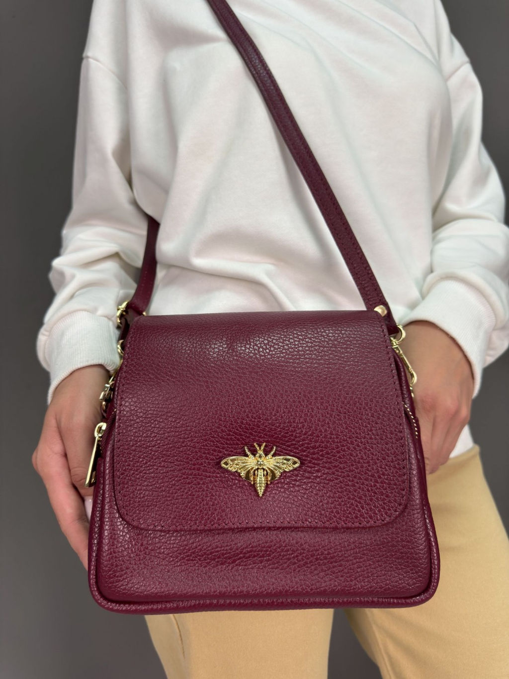 Небольшая очень красивая сумка из натуральной кожи для нежного женственного образа. Золотая бабочка-застежка делает эту сумку запоминающийся и уникальной. Закрывается на крышку и на молнию сверху. Внутри небольшой карман на молнии. Снаружи вместительный карман на молнии.