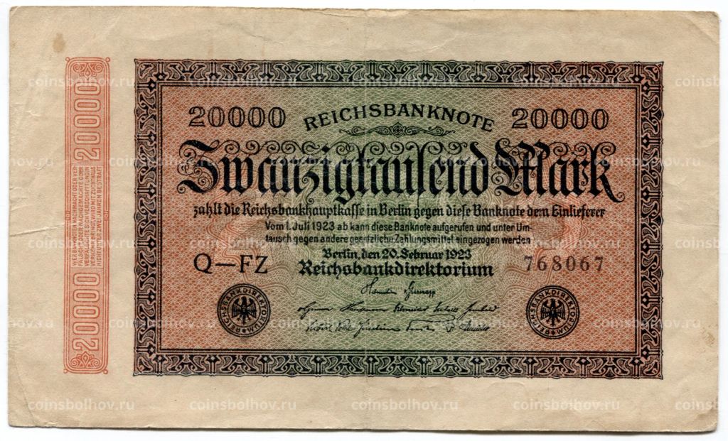 Банкнота 20000 марок 1923 года Германия