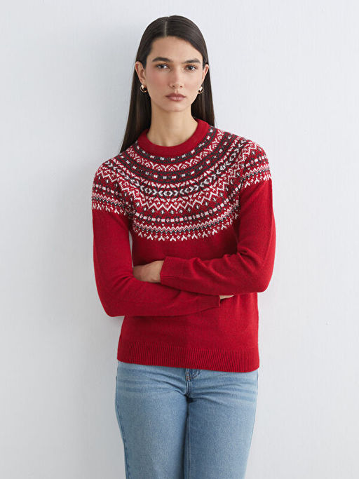Bisiklet Yaka Desenli Kad?n Triko Kazak
