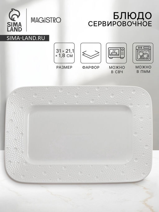 • Блюдо сервировочное Magistro Fray, прямоугольное, 31×21.1×1.8 см, фарфор, белое