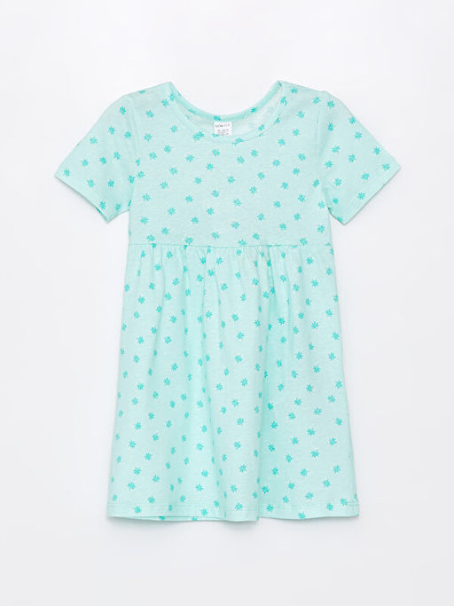 Bisiklet Yaka K?sa Kollu Bask?l? K?z ?ocuk Elbise