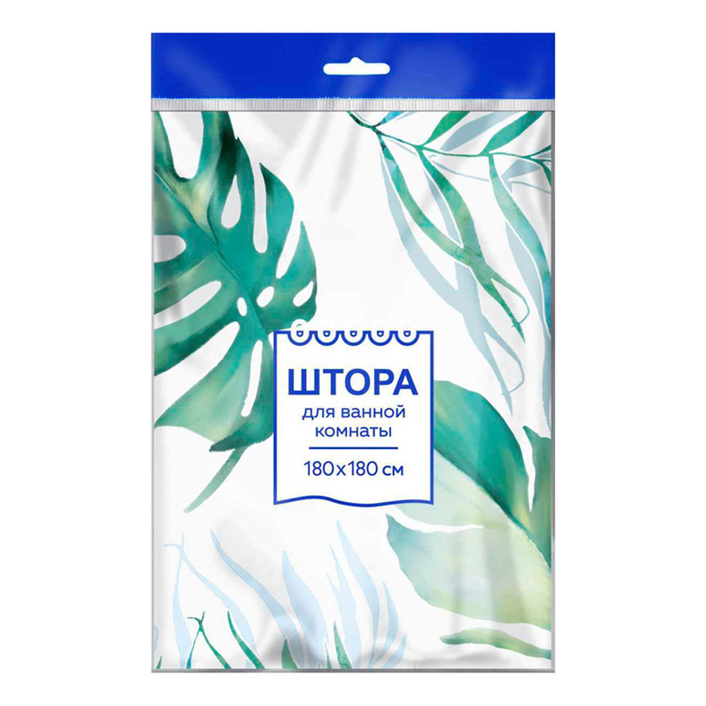 Штора для ванной комнаты из ПВД 180х180см "Тропики", 35мкм, 12 колец, в пакете (Россия)
