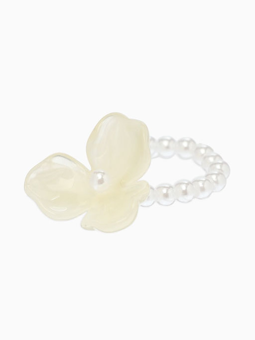 • Цена за 2 шт. Кольцо бисерное «Цветок трилистник жемчужный», бежевое, на резинке, безразмерное