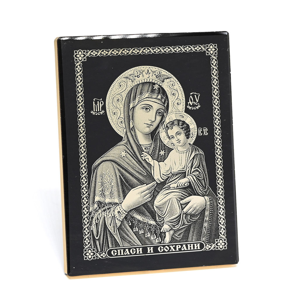 • Икона настольная из обсидиана 70*30*95мм "Богородица". Радуга камня