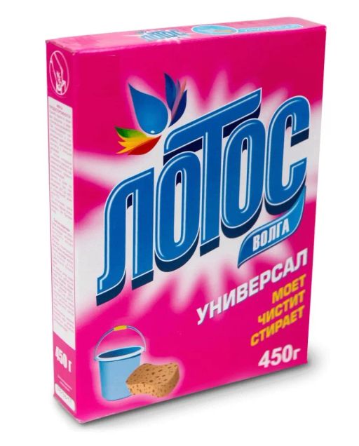Внешний вид товара может отличаться от фотографий на сайте. Эффективный стиральный порошок "Лотос-Волга" Универсал, 450 г, для замачивания, стирки руками и машинах любого типа, от пятен и грязи, подходит для хлопчатобумажных, льняных, синтетических и смешанных волокон.