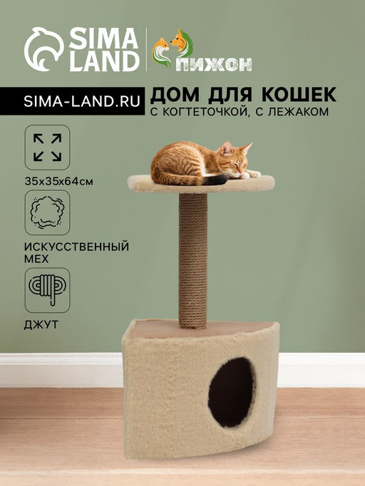 • Домик для животных угловой, 35×35×64 см, джут, бежевый