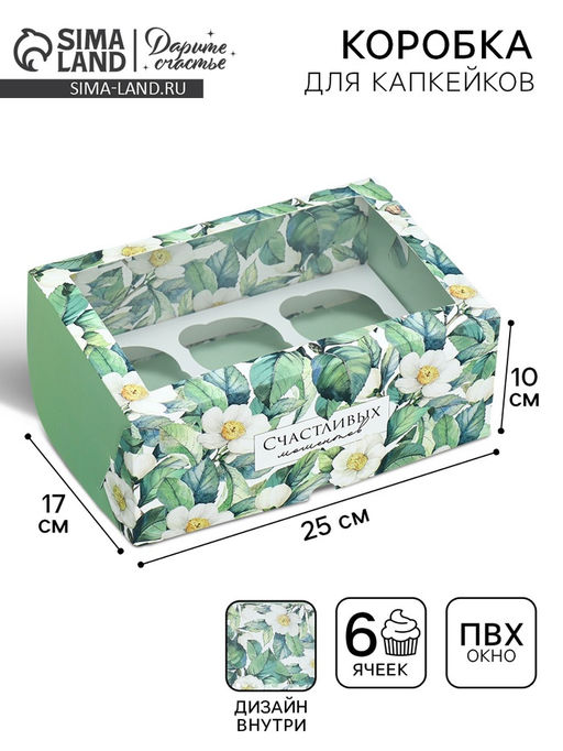 • Цена за 5 шт. Коробка для капкейков, кондитерская упаковка двухсторонняя, 6 ячеек «Счастливых моментов», 25 х 17 х 10 см