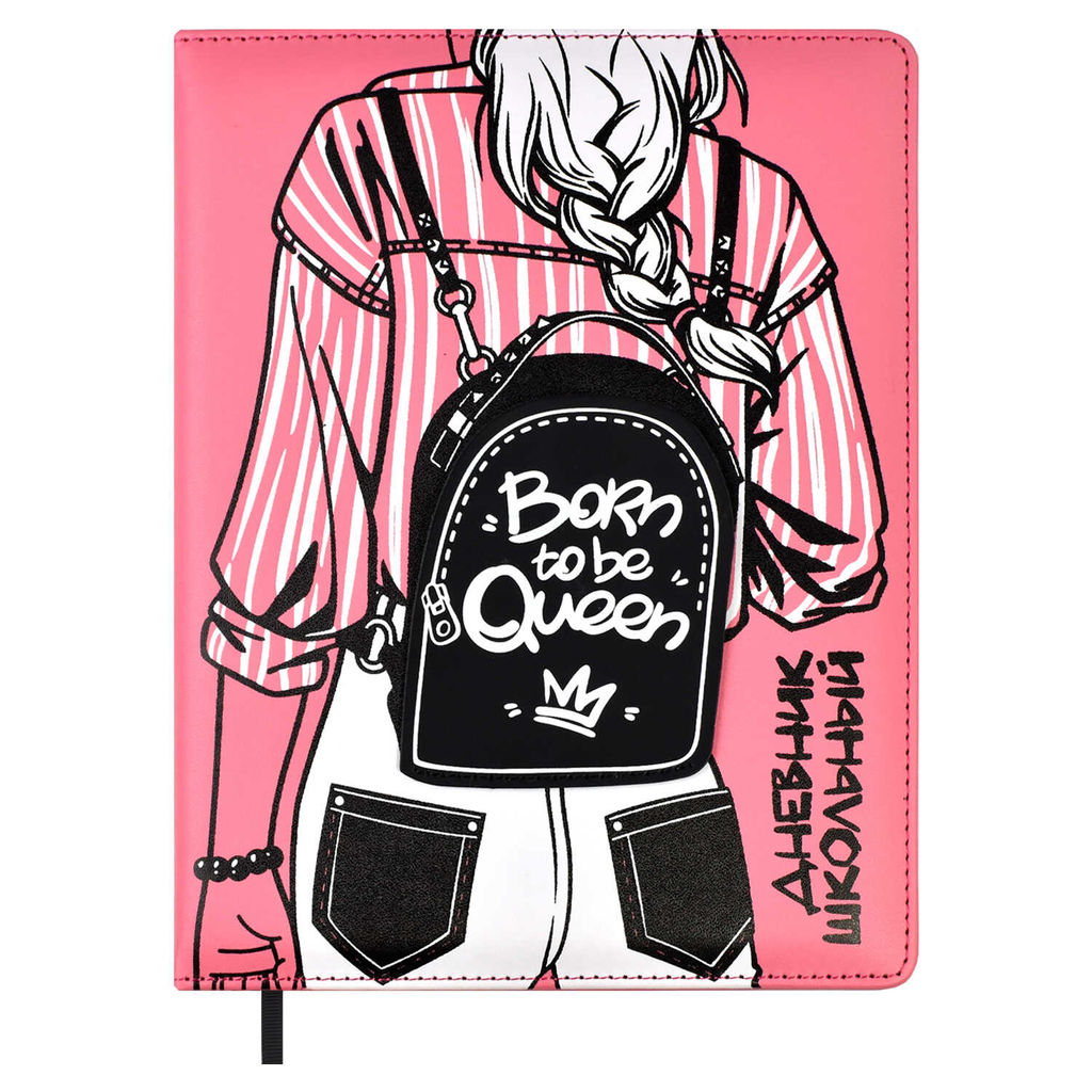 Дневник школьный арт. 62170 / 15 ДЕВУШКА (кожзам: А5+; твёрдый переплёт с поролоном, материал обложки: искусственная кожа "Плонже"; декор: аппликация из искусственной кожи, шелкография в две краски; способ крепления блока: ниткошвейный; вн. блок: 48 л., белый офсет 80 г/м?, печать в одну краску, справочный материал: универсальная шпаргалка; закладка: одно ляссе; форзац: печать пантоном; индивидуальная упаковка: ПЭТ-пакет)