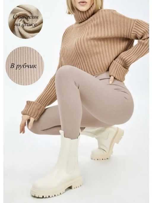 • K10823 Легинсы в рубчик (утеплитель ФЛИС) БЕЖЕВЫЙ