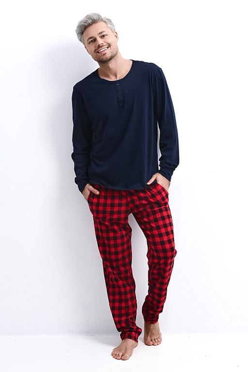 Мужская пижама Louie состоит из лонгслива с длинными рукавами и брюк свободного кроя в крупную клетку. Идеальный вариант для домашнего отдыха.­