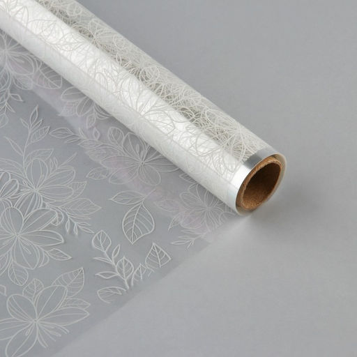 • Плёнка для цветов упаковочная глянцевая прозрачная Цветы, белая, 0.6?10 м