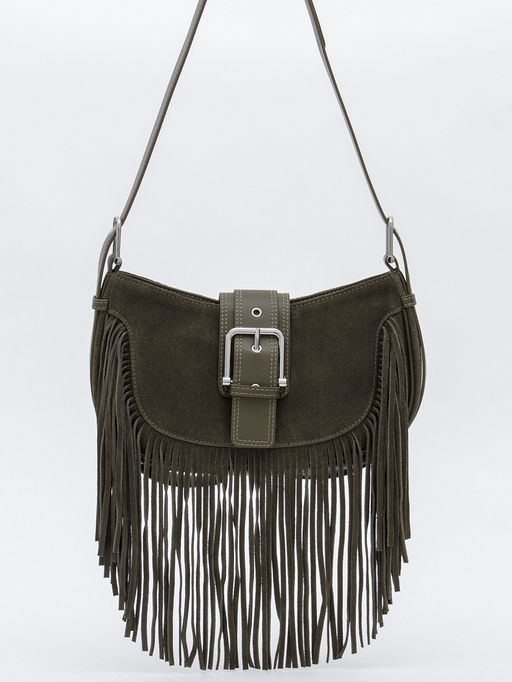 Эффектная модель, выполнена из замши. Декорирована бахромой. Дополнена серебристой фурнитурой. Данная модель закрывается на хлястик. Каркас мягкий. Носится в руке или на плече. Встроенный ремень регулируется по длине.