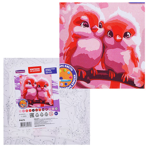 • Картина по номерам "Милые птицы на ветке" 20х20см