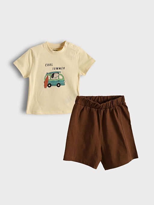 Bisiklet Yaka Bask?l? Erkek Bebek Ti??rt ve ?ort 2li