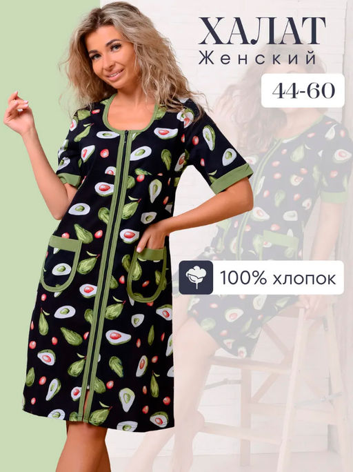 Артикул: Халат женский, модель 124,трикотаж (Авокадо, синий)