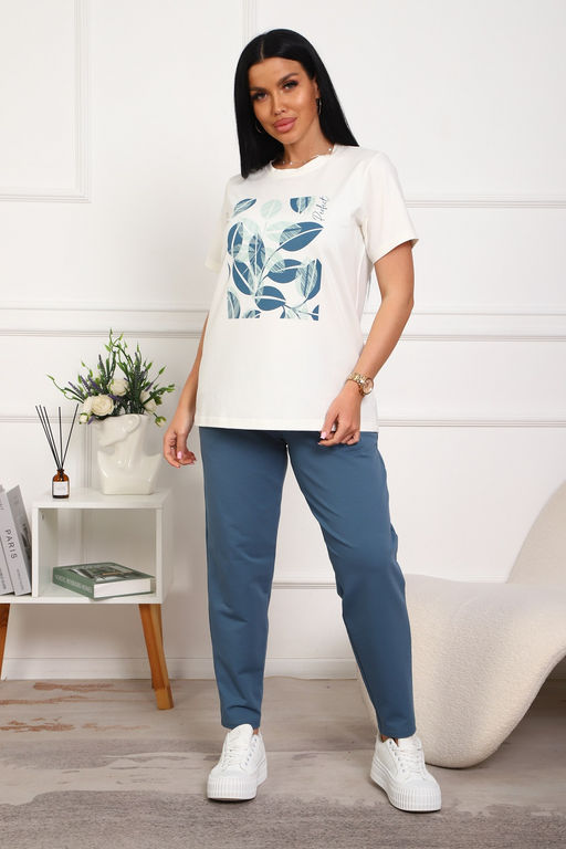 Костюм женский: футболка с короткими рукавами и бриджи с боковыми карманами.