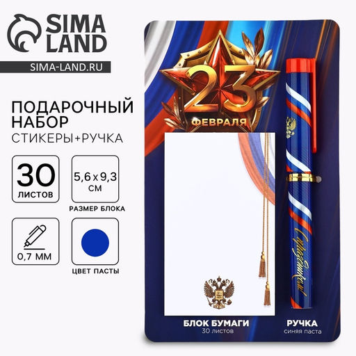 Набор подарочный 23 февраля, ручка шариковая и блок бумаги 30 л
