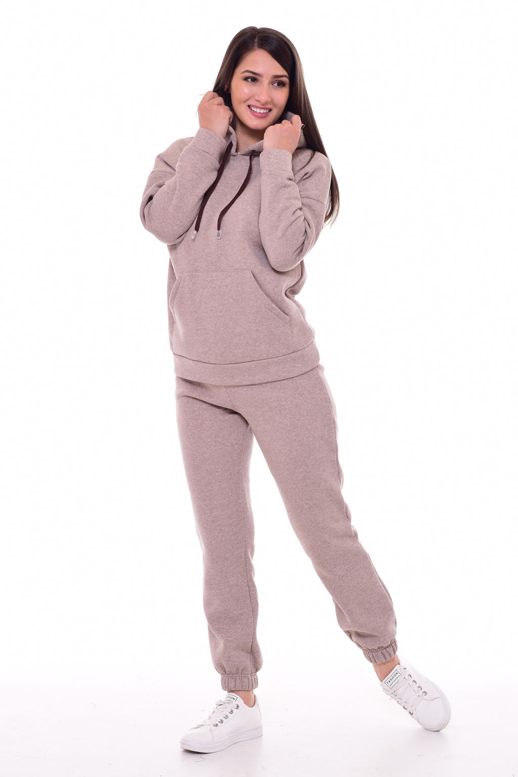 Оригинальный женский костюм из футера начес. Состоящий из толстовки и брюк. Капюшон со шнуром. Накладной карман - кенгуру. Рукава длинные с манжетами. Брюки прямого покроя , по низу широкая резинка - манжет. Пояс с широкой резинкой и шнуром. Длина изделия по спинке: 42 р. - 62 см, 44 р. - 63 см, 46 р. - 64 см, 48 р - 65 см, 50 р. - 66 см, 52 р. - 67 см, 54 р - 68 см, 56 р - 69 см, 58 р - 70 см, 60 р - 71 см. Длина изделия по боковому шву: 42р. - 93 см, 44р. - 94 см, 46 р. - 95 см, 48 р - 96 см, 50 р. - 96 см, 52 р. - 97 см, 54 р - 97 см, 56 р - 97 см, 58 р - 98 см, 60 р - 99 см. Длина изделия по шаговому шву: 42 р. - 71 см, 44 р. - 71 см, 46 р. - 71 см, 48 р - 71 см, 50 р. - 71 см, 52 р. - 71 см, 54 р - 71 см, 56 р - 71 см, 58 р - 71 см, 60 р - 71 см.