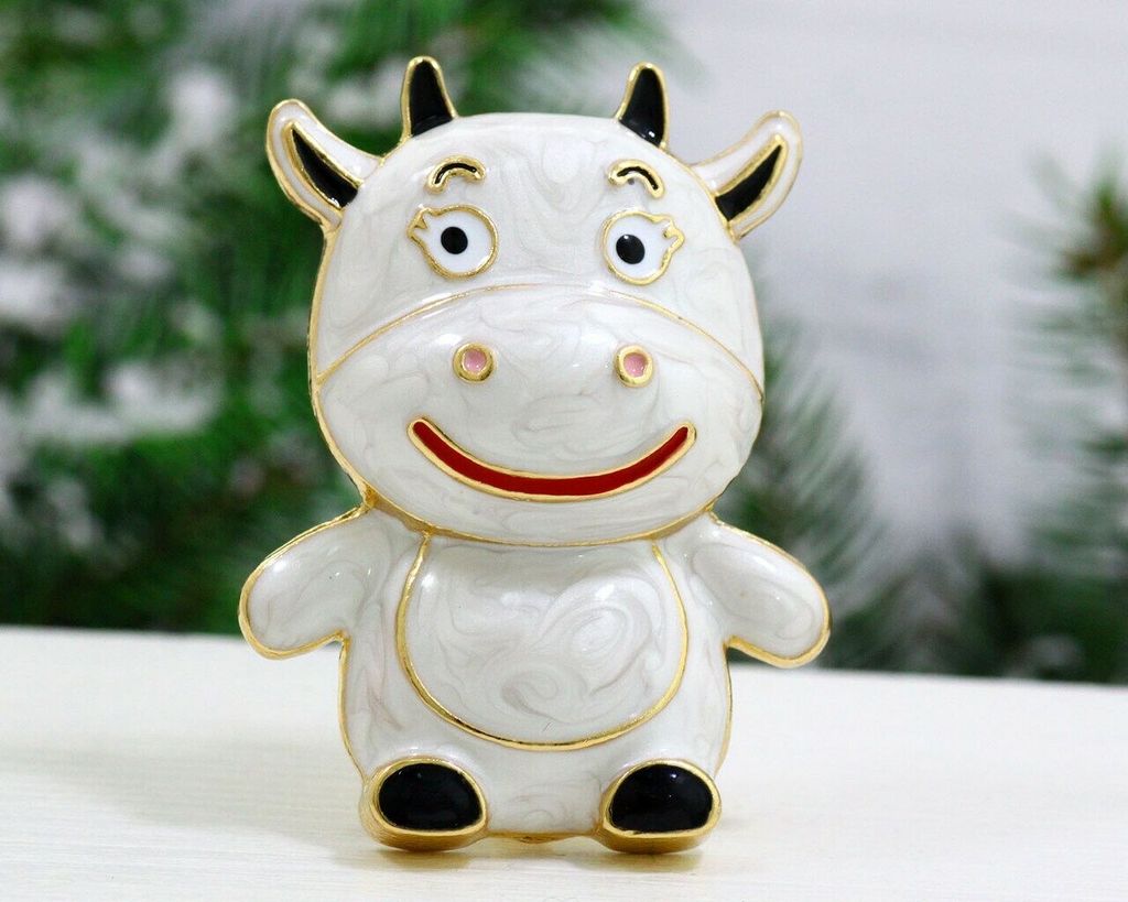 Символ Нового Года Брошь Брошь удачно дополнит ваш образ, придаст ему завершенность и изысканный шарм. Броши дают возможность для фантазии, с помощью этого маленького аксессуара вы легко и просто сможете превращать повседневное платье в вечернее, а любой свой простой наряд в модный и стильный. Броши изготовлены из ювелирного сплава, покрытого родием,горячей эмалью, покрытием под золото.